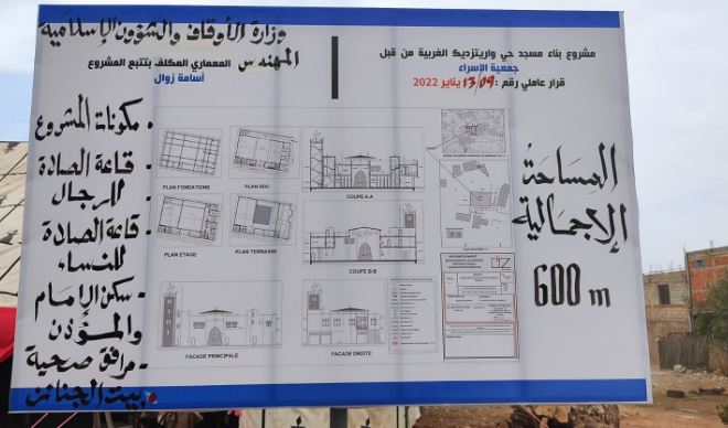 أشرف السيد باشا مدينة دمنات، والسيد رئيس المجلس العلمي المحلي بأزيلال الدكتور محمد حافظ والسادة نواب رئيس المجلس الجماعي لدمنات، والسيد المندوب الاقليمي لوزارة الاوقاف والشؤون الاسلامية بأزيلال وبحضور عدد من المحسنين والسكان، على انطلاقة أشغال بناء مسجد كبير بحي وريتزديگ الغربية بمدينة دمنات إقليم أزيلال.