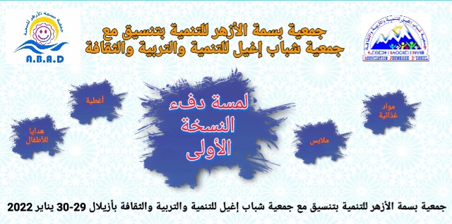 في إطار مجهوداتها الرامية إلى تنمية دواوير إغيل نُمعراض، عقدت جمعية شباب إغيل للتنمية والتربية والثقافة بأزيلال اتفاقية شراكة مع جمعية بسمة الأزهر للتنمية بالدار البيضاء، والتي كان بموجبها تنظيم نشاط اجتماعي إنساني تربوي يومي 29 و 30 يناير 2022 بمدرسة اغيل.