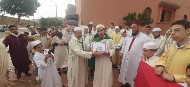 ومن المحتفى بهما : القارئ الشاب “عمر المعين” 23 سنة من منطقة امغران يقطن حاليا بإغرم لغلام ختم كتاب الله بواويزغت وتتلمذ على يد الشيح الحسن مرشد بمسجد افري نولحاج بواويزغت.