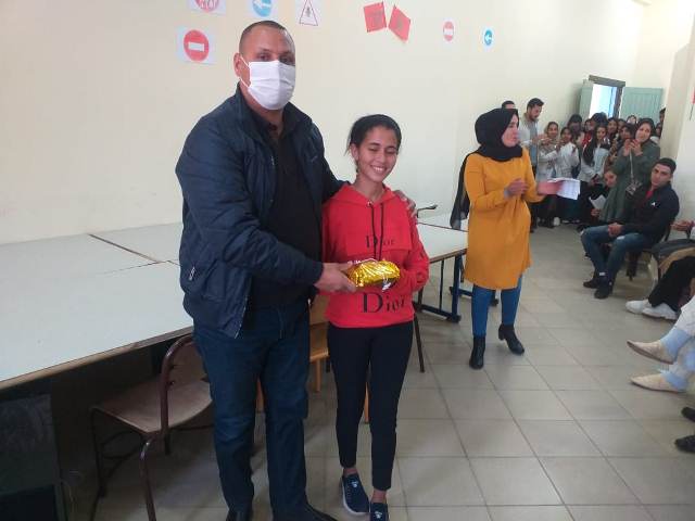ليواكب الجميع فصول الشق الثاني من الحفل والمتمثل في توزيع الجوائز على التلميذات والتلاميذ الثلاث الأوائل عن كل مستوى ،وتخصيص جائزة لتلميذة من ذوي الاحتياجات الخاصة(الصم+البكم) بالسنة الثالثة اعدادي اعترافا لمجهوداتها في مسايرة الدروس .