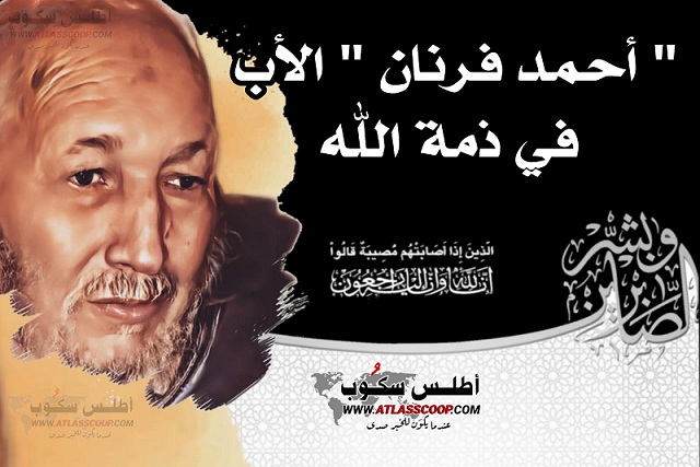 بعيون دامعة وقلوب خاشعة راضية بقضاء الله وقدره، تلقينا اليوم الثلاثاء 31 ماي نبأ وفاة الفقيد احمد فرنان بواويزغت وبهذه المناسبة الاليمة يتقدم طاقم موقع “أطلس سكوب”، بأحر التعازي لكل أفراد عائلة فرنان في مقدمتهم أبناء الفقيد، حسن وإسماعيل وابراهيم ولعائلته وجيرانه راجين من العلي القدير أن يتغمد الفقيد بواسع رحمته ويلهم ذويه الصبر والسلوان، وإنا لله وإنا إليه راجعون..