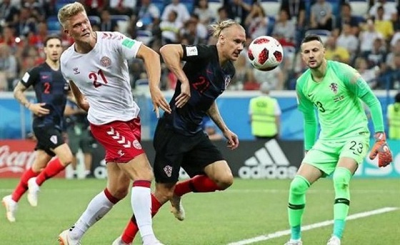 وأدركت الدنمارك التعادل بتسديدة من 25 مترا للاعب وسط مانشستر يونايتد الانكليزي كريستيان إريكسن (77)، ليرد عليه بعد دقيقة من دخوله بديلا لاعب وسط رين الفرنسي لوفرو ماير بتسديدة بينية بقدمه اليسرى عقب تمريرة من البديل الآخر ميسلاف أورسيتش ليعيد الأفضلية لكرواتيا (79).
