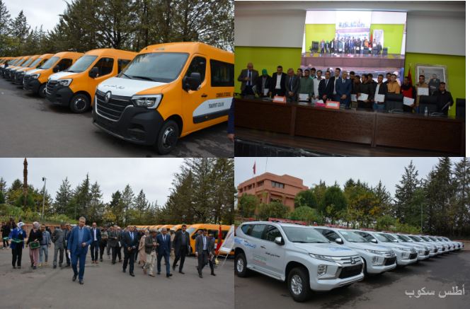 انتقل بعد ذلك السادة أعضاء اللجنة الإقليمية تحت إشراف السيد العامل الى توزيع سيارات النقل المدرسي و سيارات الإسعاف المقتناة في إطار برنامج الدفع بالرأسمال البشري للأجيال الصاعدة برسم سنة 2022 و همت 13 حافلة للنقل المدرسي بكلفة مالية تجاوزت 4.6 ملايين درهم و استفادت منها جماعات تنانت- بني حسان- ايت بواولي- تامدا نومرصيد – اكودي نالخير- ايت اومديس – تيديلي فطواكة – تاكلفت سيدي يعقوب-ايت ماجدن –واولى-سيدي بولخلف.