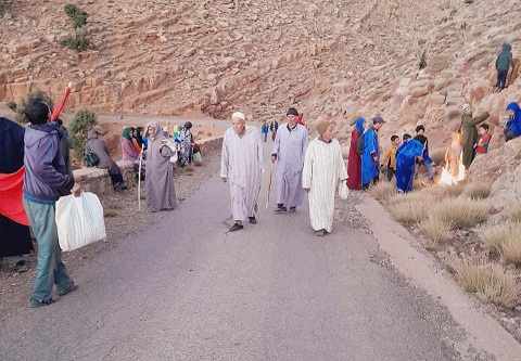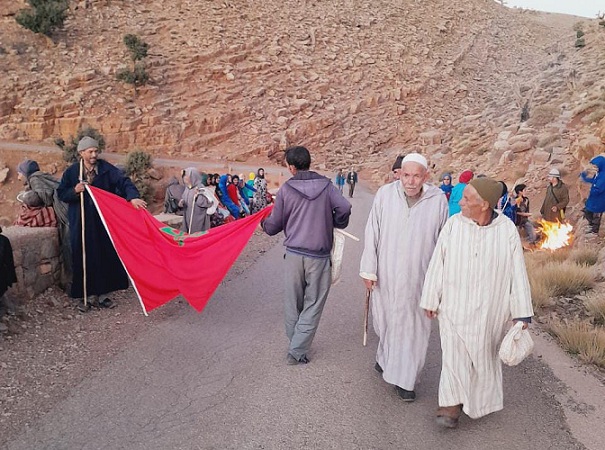 مواطنون من أيت عباس يقطعون 90 كيلومترا مشيا على الاقدام وصولا إلى مقر عمالة أزيلال احتجاجا على العزلة