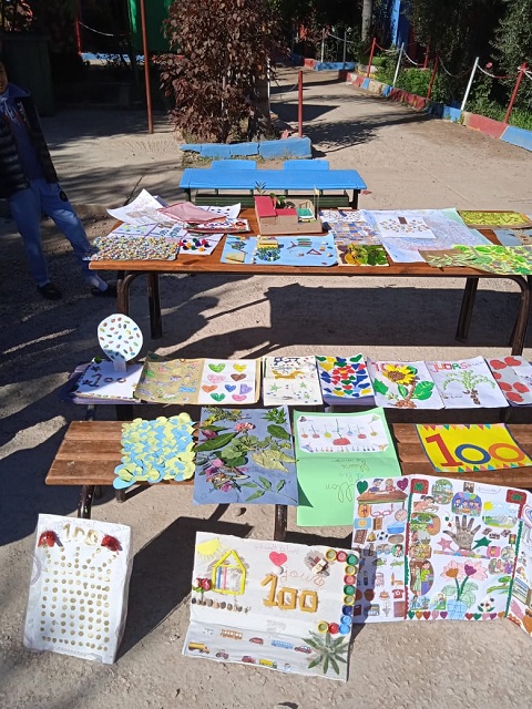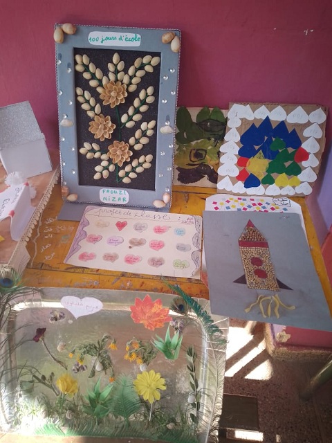 2) زيارة معرض الأعمال التي تجسد 100 يوم بالمدرسة والتي قام بها التلاميذ