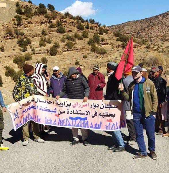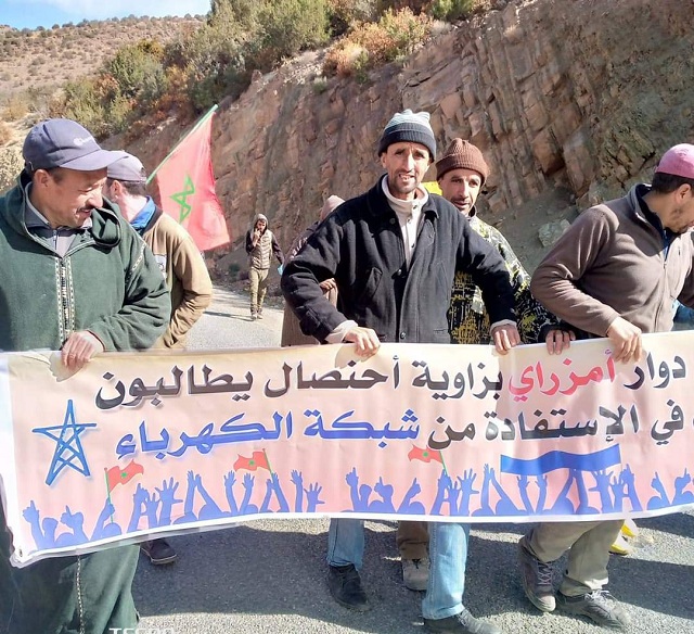 خرج صباح اليوم الثلاثاء 31 يناير الجاري، عدد من المواطنين بدوار أمزراي التابع لجماعة زاوية أحنصال إقليم أزيلال في وقفة ومسيرة احتجاجية، بمركز جماعة زاوية أحنصال احتجاجا على التوقف المفاجئ لأشغال الربط الكهربائي.