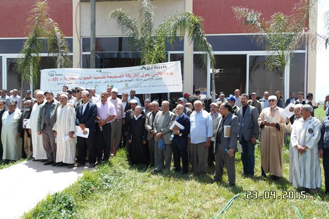اللقاء ،كان بتراب جماعة أولاد ناصر باقليم الفقيه بن صالح، وتمّ تحث اشراف الدكتور محمد الغروص، المدير الاستشاري للمعهد الدولي لتغدية النباتات والمدير الجهوي للبحث الزراعي بسطات، والباحث/ المهندس زايد كيرو ، واستهدف عشرات المزارعين ، الذين تابعوا عن كتب شروحات وتوضيحات دقيقة عن ” الطريقة الصحيحة لتسميد الحبوب” ، باعتبارها ” عملية علمية وتقنية ، تروم إدارة خصوبة التربة بطريقة مندمجة ، وضمان جودة وتحسين مردودية الحبوب”.