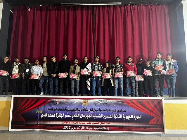 واحتضنت دار الشباب المغرب العربي ببني ملال صباح يوم أمس، فعاليات الإقصائيات الجهوية للمهرجان الحادي عشر لجائزة محمد الجم في دورته الجهوية الثانية لمسرح الشباب تحت شعار “المسرح مدخل للتربية على القيم المثلى”.