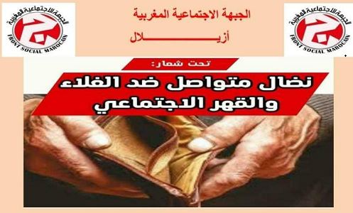 دعت الجبهة الاجتماعية المغربية بأزيلال إلى تنظيم وقفة احتجاجية يوم السبت 8 أبريل الجاري بساحة بين البروج بمدينة أزيلال، بسبب” الغلاء غير المسبوق للمواد الغذائية الأساسية” .