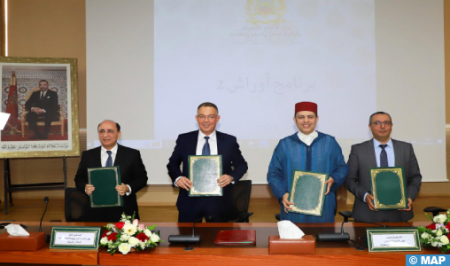 تم التوقيع على أربع اتفاقيات، اليوم الثلاثاء بالرباط، في إطار تنفيذ النسخة الثانية من برنامج “أوراش”، الذي يهدف إلى إحداث 250 ألف فرصة شغل مباشرة خلال سنتين، وذلك في إطار أوراش عامة مؤقتة صغيرة وكبيرة المدى.
