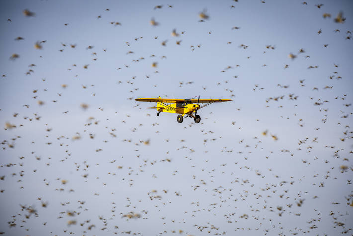 شرعت السلطات المختصة في الاستعانة بطائرات الرش للقضاء على أسراب الجراد، بنفوذ جماعة فم الحصن، حيث تمت تعبئة طائرتين من طرف المكتب الوطني لمكافحة الجراد بآيت ملول، نظرا لشساعة المساحات المتضررة ووعورة التضاريس، وبعدها ستحلق الطائرات في اتجاه طاطا لتنفيذ هذه العملية.