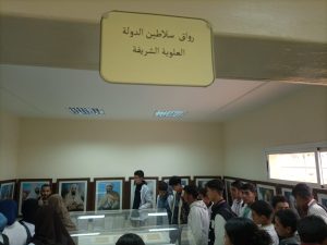 وتم استقبال تلاميذ المؤسسة والأستاذ المرافق لهم ، من طرف الاستاذ محمد ايت خويا المكلف بالمرفق والذي تولى شرح محتويات الأروقة من الصور النادرة والمنشورات التاريخية والمعروضات المتحفية، حيث أقبل المتعلمون على ذلك بحماس وفضول كبيرين وهم يجوبون أروقة الفضاء بدء من رواق السلاطين العلويين الذي يحتوي على صور جميع الملوك العلويين بدء بمولاي علي الشريف وانتهاء بصاحب الجلالة الملك محمد السادس.