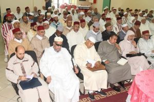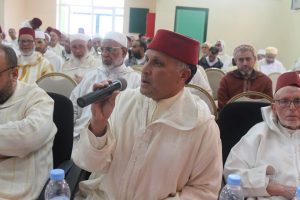 وتركزت أشغال الجلسة الثانية تحت إشراف السيد محمد السعيدي، رئيس المجلس العلمي المحلي بخريبكة، في مداخلات علمية متكاملة المضامين، تقدم بها السادة: “ند عبد الله”، رئيس المجلس العلمي للفقيه بنصالح بعنوان: “الأسس المؤطرة في إطار خطة ميثاق العلماء المسطرة”، ، والدكتور عبد الرحمان العضراوي، عضو المجلس العلمي لبني ملال بعنوان: “علم أصول الفقه في علم المقاصد: دراسة المنهج “، والسيد محمد بوربيع، عضو المجلس العلمي لخنيفرة بعنوان: ” فن التواصل وأهميته في الارتقاء بدرس التأطير الديني “، والسيد عبد الله آيت حسين، واعظ بالمجلس العلمي لأزيلال بعنوان: ” خطة ميثاق العلماء في صيغتها الجديدة وخصائصها بين الماضي والحاضر “، مذكرين بأهم المبادئ التي يستدعيها برنامج التكوين بخصوص خطة ميثاق العلماء.