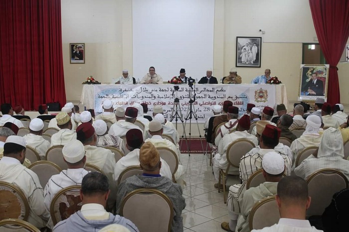 نظم المجلس العلمي الجهوي لجهة بني ملال خنيفرة بتنسيق مع المندوبية الجهوية للشؤون الإسلامية والمندوبيات الإقليمية بالجهة، لقاء جهويا تواصليا تكوينيا، لفائدة مؤطري خطة ميثاق العلماء، وذلك يوم الأحد 8 ذو القعدة 1444هـ، الموافق 28 ماي 2023م، بدار الثقافة بأفورار إقليم أزيلال، حضره السيد الكاتب العام للمجلس العلمي الأعلى، الدكتور سعيد شبار، والسيد رئيس المجلس العلمي الجهوي لجهة بني ملال خنيفرة، الدكتور مصطفى زمهنى، إلى جانب السيد المندوب الجهوي للشؤون الإسلامية، ورؤساء المجالس العلمية المحلية ومناديب الشؤون الإسلامية للأقاليم التابعة للجهة، فضلا عن أعضاء المجالس العلمية، والسادة المؤطرين لخطة ميثاق العلماء.