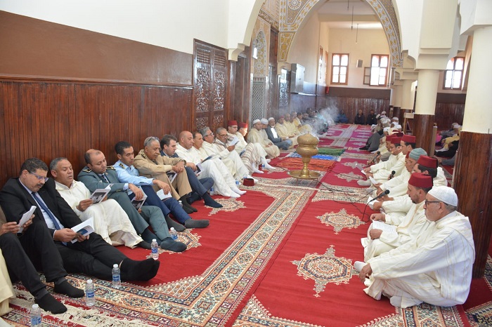 واختتم الحفل الديني بالدعاء الصالح لأمير المؤمنين جلالة الملك محمد السادس ولولي العهد مولاي الحسن ، ولكافة أفراد الأسرة الملكية الشريفة والترحم على المغفور لهما جلالة الملك محمد الخامس وجلالة الملك الحسن الثاني طيب ثراهما ، وللشعب المغربي والأمة الإسلامية جمعاء .