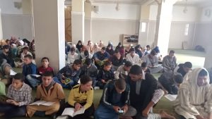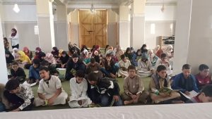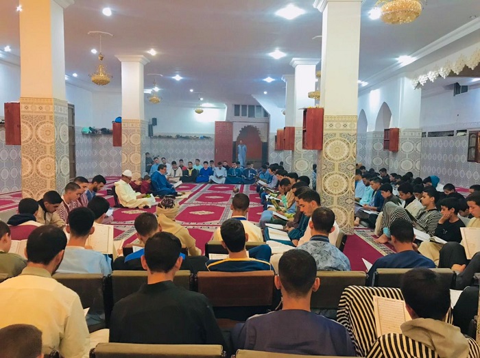 وقد تميز هذا الحفل الديني، بتلاوة جماعية لسورة “يس” وتوزيع سلك القرآن على طلبة المدرسة، الذين ختموا القرآن الكريم مع إنشاد أمداح نبوية، ووقف الجميع بكل خشوع وإجلال ترحما على روح فقيد العروبة والإسلام المغفور له الملك الحسن الثاني.