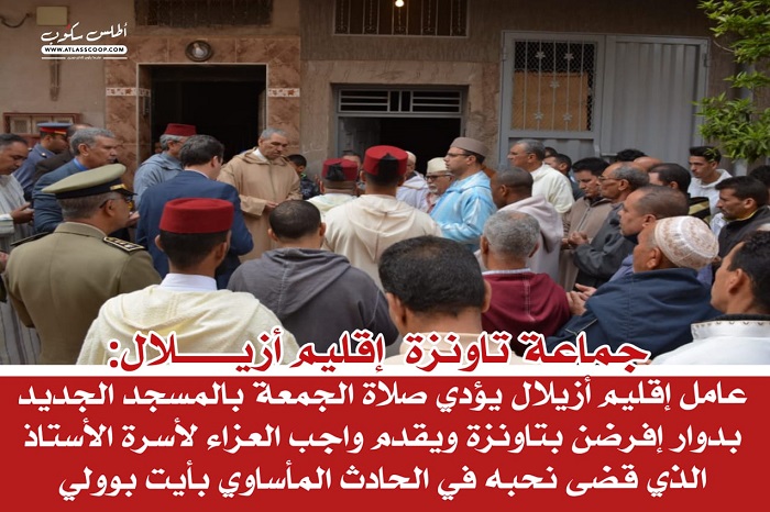 عامل أزيلال يؤدي صلاة الجمعة بالمسجد الجديد بتاونزة ويقدم واجب العزاء لأسرة الأستاذ ضحية فاجعة أيت بوولي