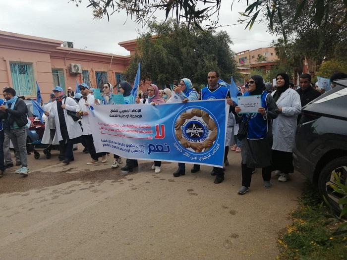وأكد بيان النقابة أن الوقفة تأتي أمام عدم التزام وزارة الصحة والحكومة بمحاضر الاتفاقات والاجتماعات، وعدم الاستجابة للمطالب الملحة لنساء ورجال الصحة وتجاهل النقاط الخلافية، مما يكرس مشروعية المخاوف وعدم الثقة في “الضمانات الممنوحة للموارد البشرية بالوظيفة الصحية” مما يقتضي مراجعة شاملة ومستعجلة للقوانين 08.22 و09.22 بما يحافظ على صفة الموظف العمومي للعاملين في القطاع ومركزية أجورهم واستقرارهم المهني وكافة مكتسبات النظام الأساسي للوظيفة العمومية، وتعزيزها بالاستجابة للمطالب المشتركة والخاصة بالفئات ومواقع العمل، والتراجع عن العصف بمصيرهم الوظيفي والاجتماعي عبر نقلهم التلقائي إلى نظام المجموعات الصحية الترابية GST دون حقهم في الاختيار بين النقل أوالالحاق أو الوضع رهن الإشارة.