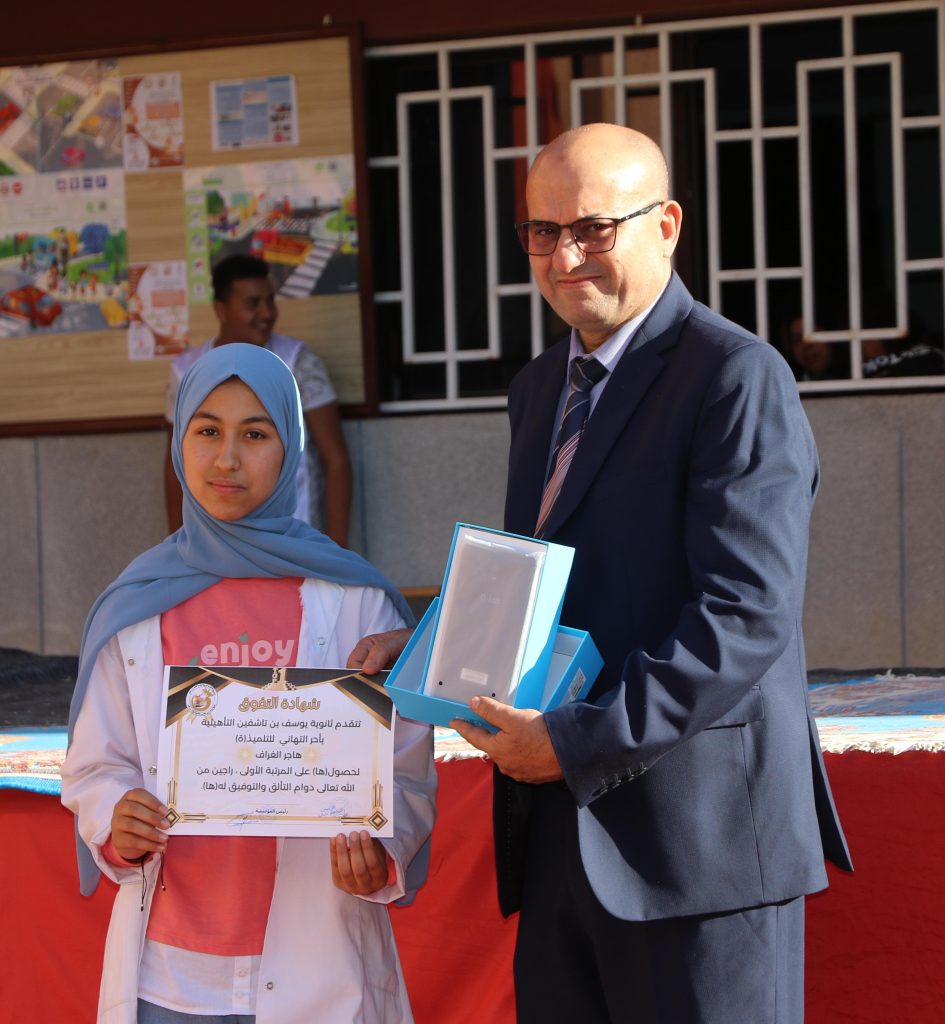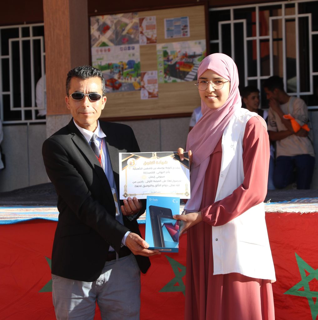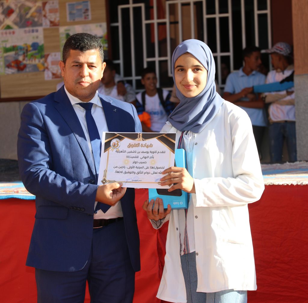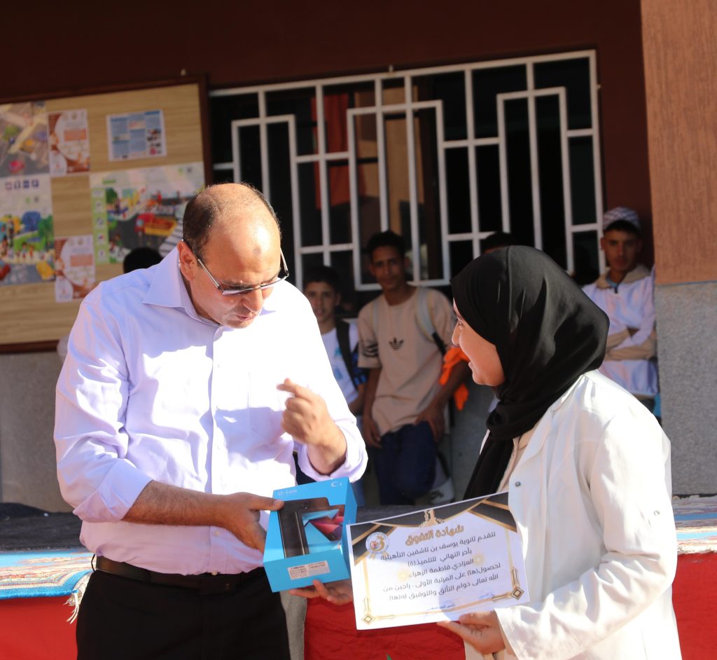 وعرف الحفل تقديم شواهد تقديرية وجوائز قيمة على المتعلمات والمتعلمين المتفوقين في المؤسسة برسم الفصل الأول من الموسم الدراسي وذلك تشجيعا للتميز والتفوق الدراسي، كما عرف الحفل تقديم شواهد تقديرية على بعض التلاميذ الفاعلين في تنشيط الحياة المدرسية بالمؤسسة.