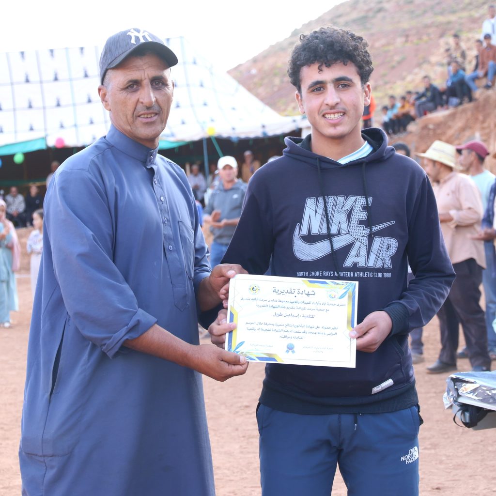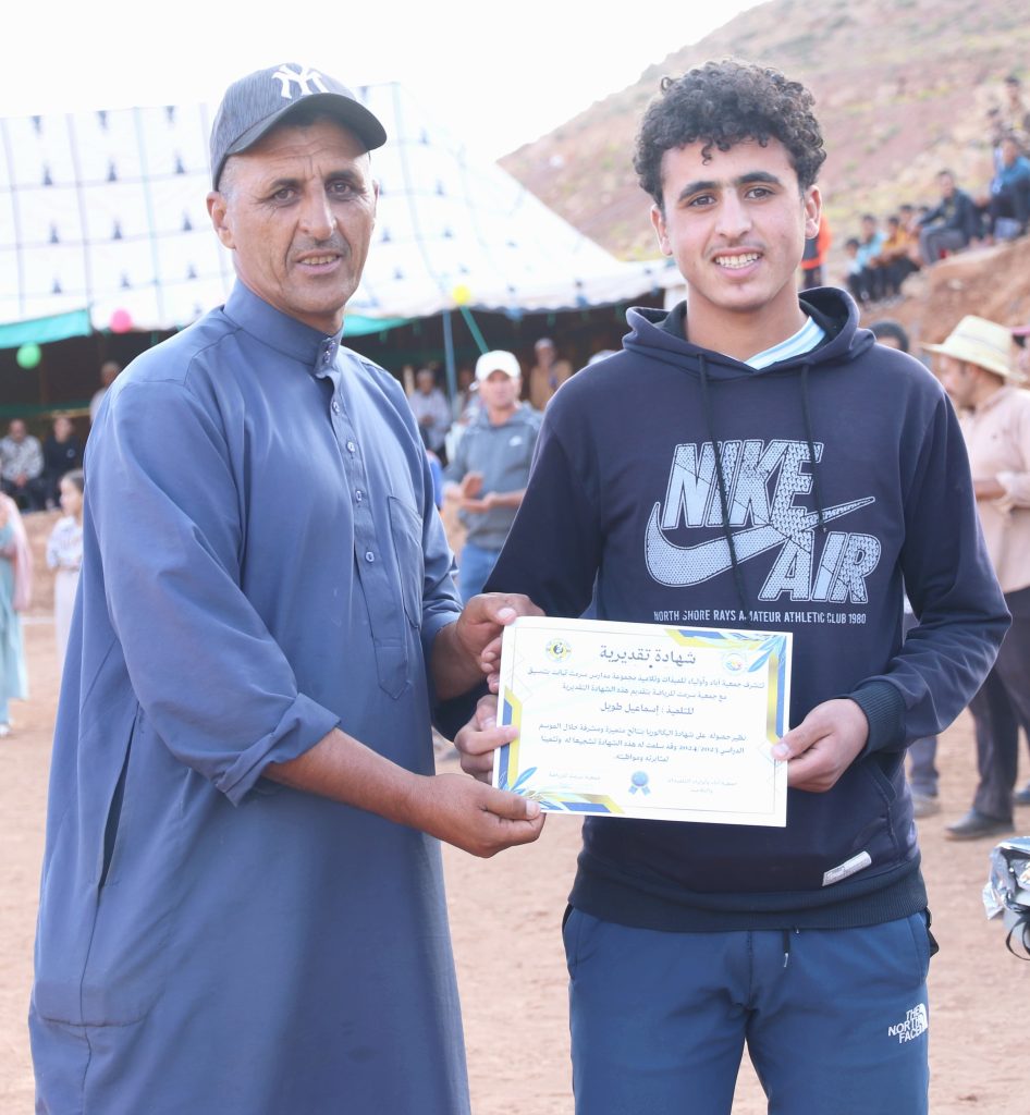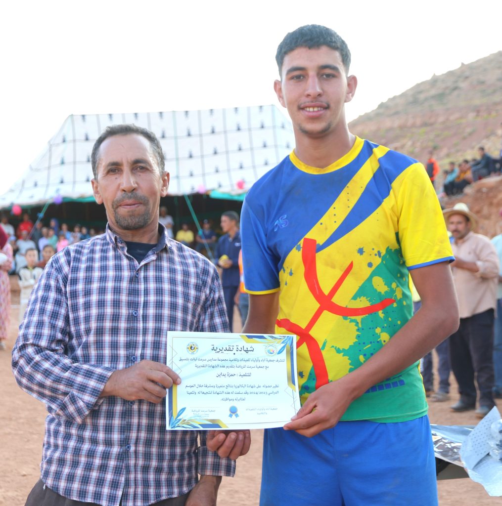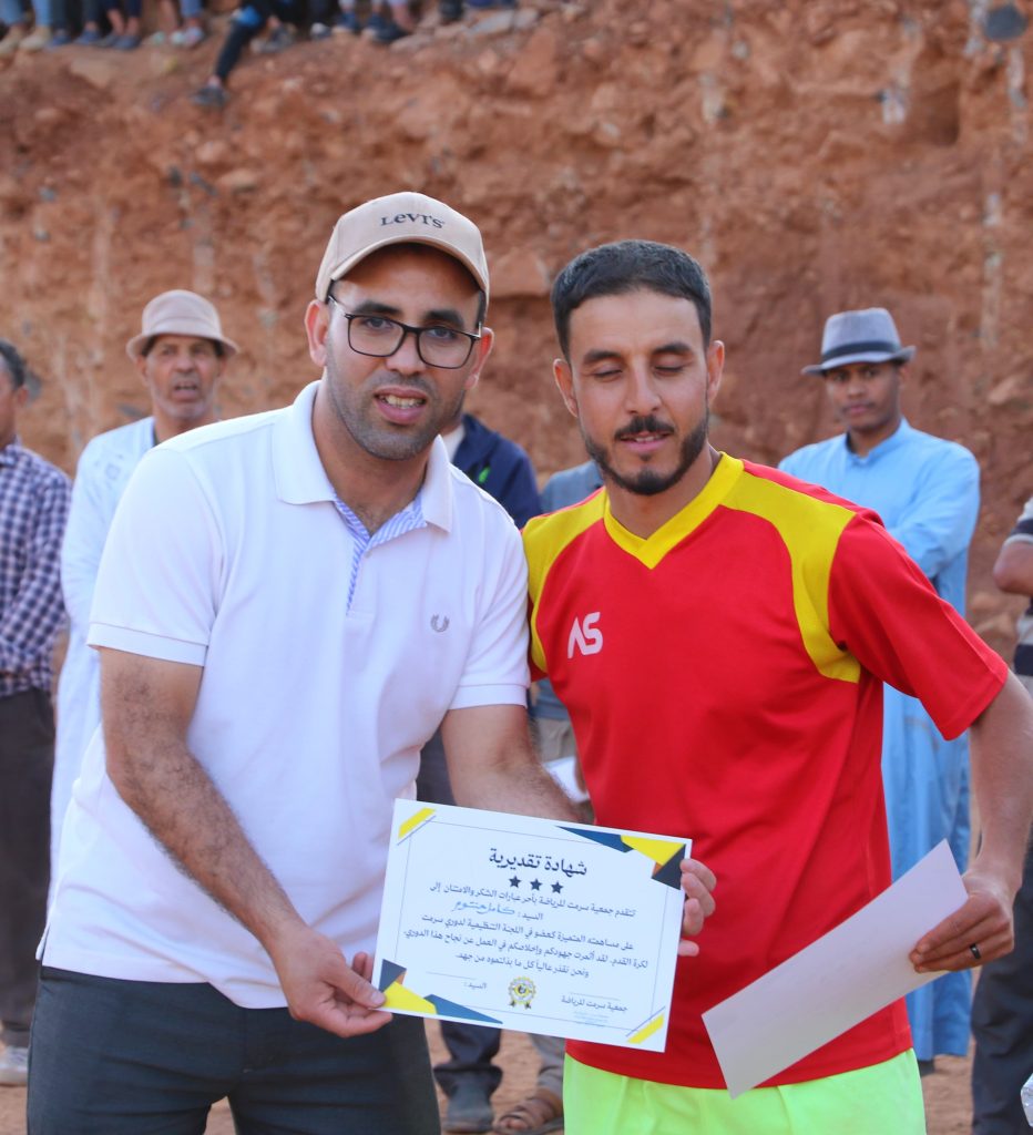 وبعد صافرة نهاية المباراة، التي أعلنت فوز فريق أندبندنتي بالستينو بطلا لدوري سرمت لكرة القدم المنظم من طرف جمعية سرمت للرياضة تحت شعار: “الرياضة احترام وأخلاق وتسامح”، أقيمت مراسم تتويج الفرق الفائزة بهذه النسخة وكذا تتويج التلميذات والتلاميذ المتفوقين دراسيا بمختلف المستويات الدراسية.