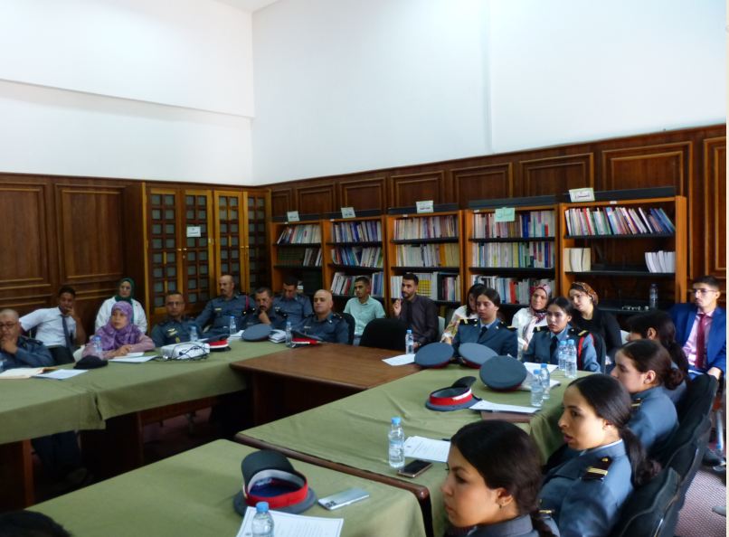 وتناول الكلمة في فقرة المناقشة، المساعد مروان الشامي قائد مركز الدرك الملكي بايت شواريت حديث التعيين بالمركز، حيث تحدث عن البند العاشر من قانون 103/13، في شأن إحداث لجان محاربة جميع أشكال العنف ضد النساء والأطفال منها لجنة مركزية، و28 خلية على مستوى الجهات، و90 خلية على مستوى سريات للدرك الملكي يترأسها رؤساء المراكز القضائية.